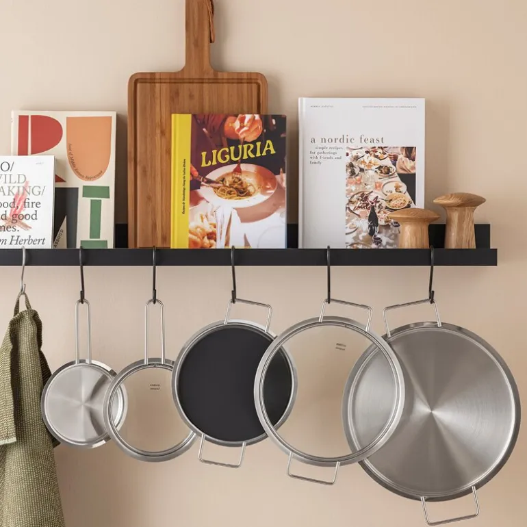 Eva Trios tallerkenlokk 13 cm i rustfritt stål er en smart løsning med fokus på funksjonalitet. Det lange håndtaket gjør det trygt og enkelt å løfte lokket, slik at du kan sjekke maten uten å risikere dampforbrenninger. Lokket kan både stables eller henges opp, avhengig av oppbevaringsbehovet ditt.