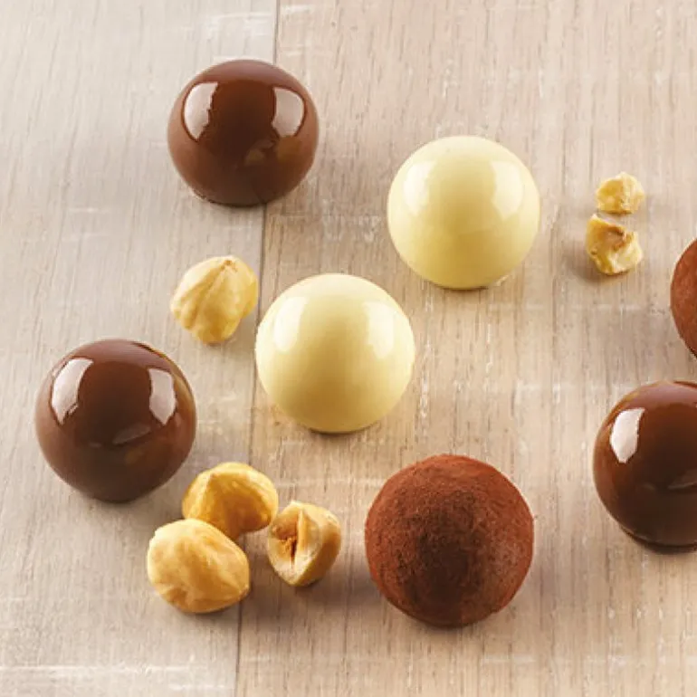 Lag elegante små sjokoladeboller med Tartufina-formen fra Silikomart. Formen har plass til 15 biter på 2,5 cm og er laget av fleksibel platinasilikon for enkel frigjøring og nøyaktig resultat – helt uten behov for fett.