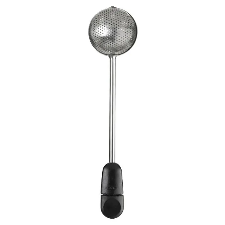 Te-egget har et langt skaft som passer til de fleste bokser, kopper og krus. En smart twist-funksjon i håndtaket åpner og lukker te-egget og sikrer at te-egget lukkes og tebladene forblir inne i te-egget, mens du brygger teen.