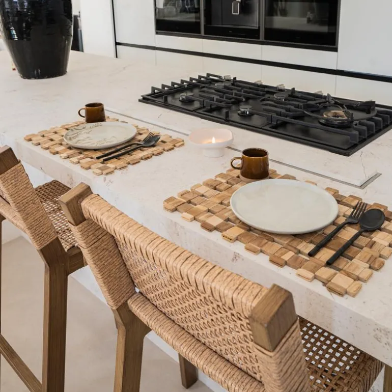 Dekkebrikke laget av 100% teak med høy kvalitet og mostandsdyktighet mot bøy i kanter og brettemerker. Lett å rengjøre med en fuktig klut. ZICZAC er en serie med bord- og glassbrikker, produsert av høy kvalitets kunstlær, i mange flotte farger og fasonger.