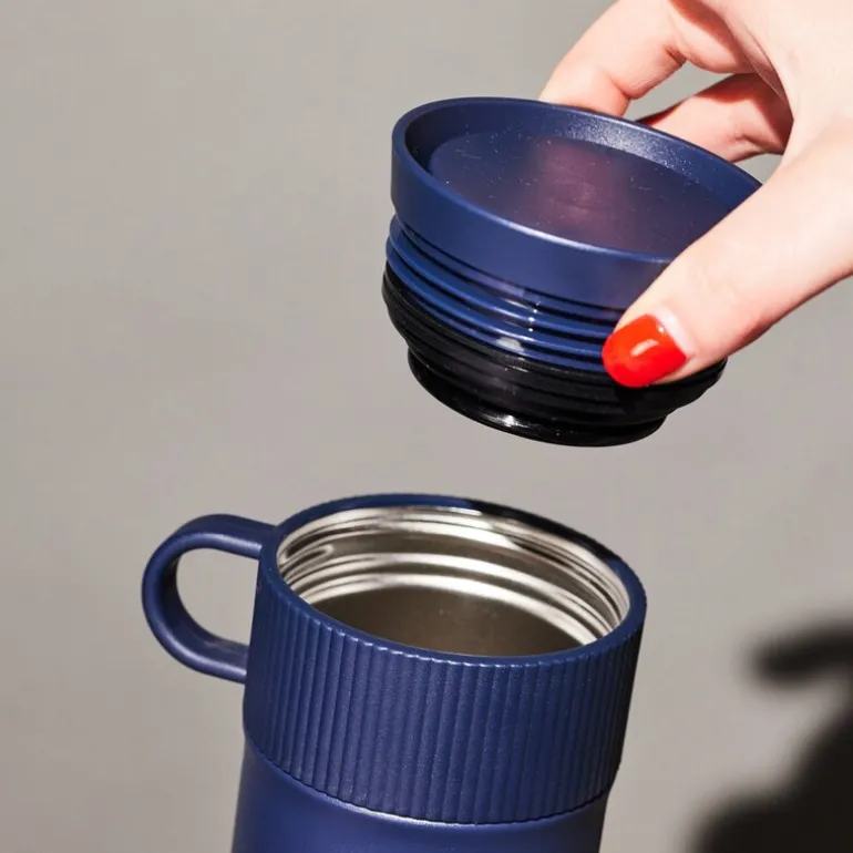 Laget av resirkulert rustfritt stål, har Ted et ergonomisk og gripevennlig design med et praktisk håndtak som gjør den enkel å bruke, uansett hvor du er. Lokket har en smart pushfunksjon som gjør det enkelt å åpne og lukke, og den 360-graders drikkeopplevelsen gir følelsen av å drikke rett fra din favorittkopp – som om det ikke var noe lokk i det hele tatt.