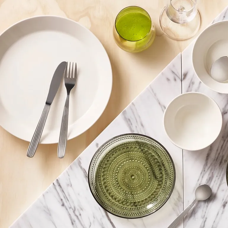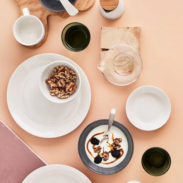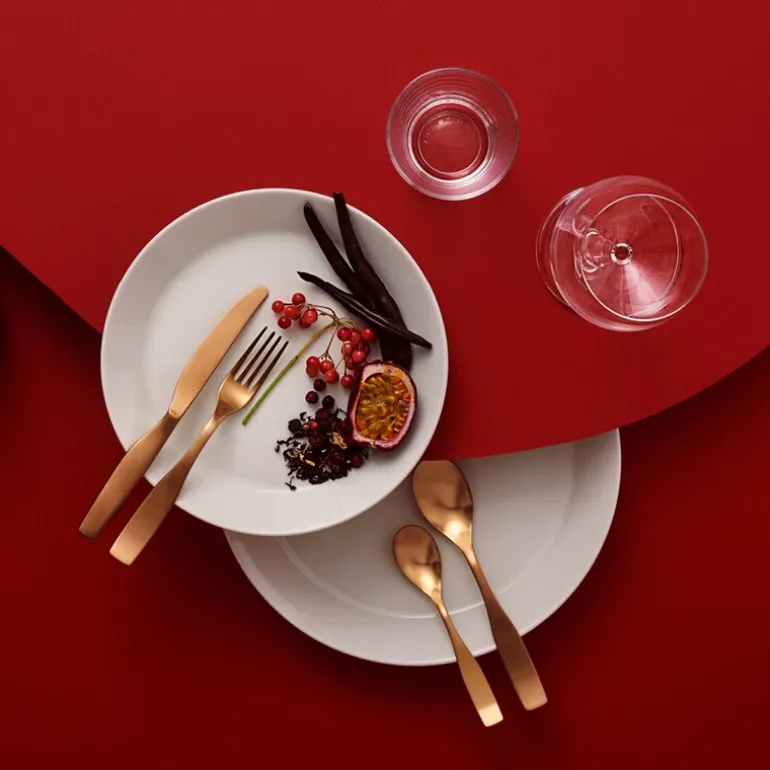 Designet er inspirert av de tre grunnleggende formene; sirkel, kvadrat og rektangel, noe som gir et moderne og stilrent uttrykk. Kaj Franck mente at fargen alene var den eneste dekoren som trengtes, og dette gjenspeiles tydelig i det enkle, men elegante designet på Teema-serien. Tallerkenene er også utformet for å være stablevennlige, noe som gjør at de tar minimalt med plass i kjøkkenskapet. Settet kommer i en praktisk 4-pakning, perfekt for å dekke bordet til både små og store måltider.