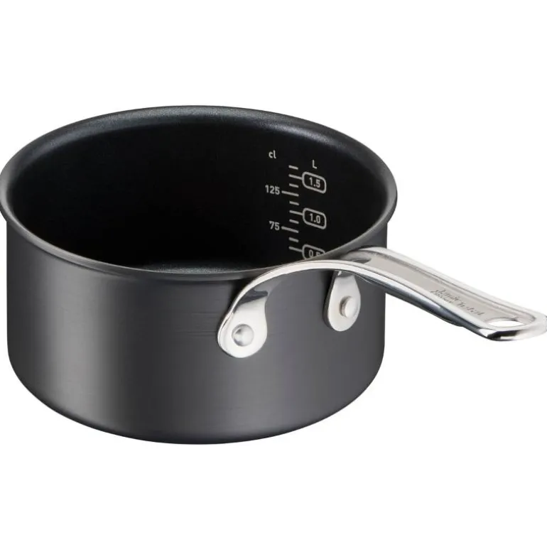 Laget av anodisert aluminium, sikrer grytene og pannene jevn varmefordeling og rask oppvarming, samtidig som det slitesterke non-stick-belegget gjør matlagingen mer effektiv og rengjøringen enklere. Settet fungerer på alle typer kokeplater, inkludert induksjon, og tåler dessuten bruk i stekeovn opptil 210 °C. Glasslokkene tåler opptil 175 °C og gir deg full kontroll over matlagingen.