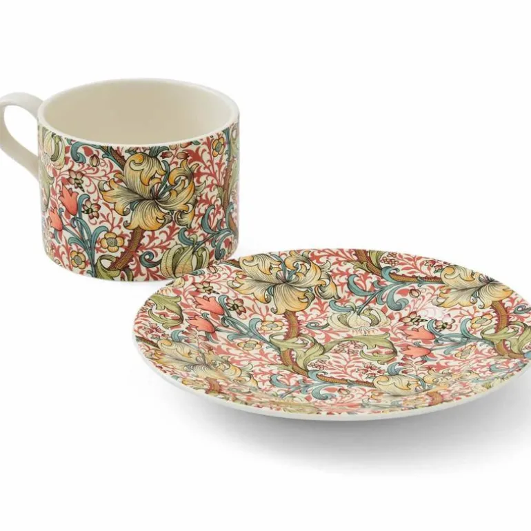 Morris & Co Tekopp og Fat Golden Lily inngår i porselensserien som er tatt frem for å feire Morris & Co 160 års jubileum. Den fantastiske paletten med gamle mønster fra William Morris arkiv skaper en kjempefin serie som passer de fleste hjem! Kompletter med andre produkter i serien, for eksempel tekannen og kakefat.