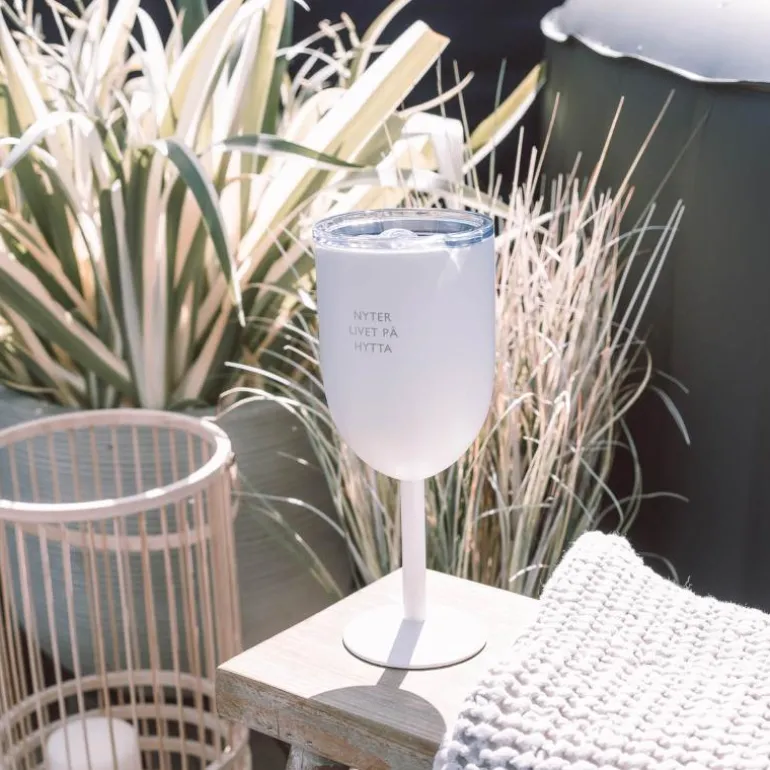 Med NYTER LIVET PÅ HYTTA – termoglass m/stett holder drikken seg kald. I tillegg slipper du insekter som lurer seg ned i drikken din, da den kommer med praktisk lokk m/lukkemekanisme. Glasset er laget av rustfritt stål med doble isolerte vegger. NYTER LIVET PÅ HYTTA – termoglass m/stett har en matt hvit farge. Teksten er lasergravert og sølvfarget.