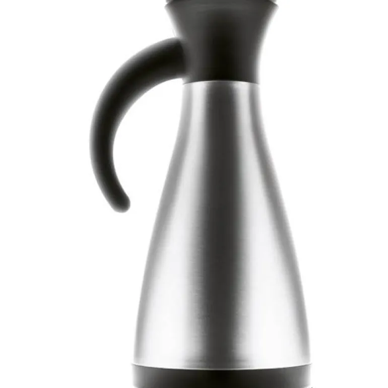 Med dryppfri kant – uknuselig, med rustfritt stål innvendig og utvendig. Dryppfri hellekant i stål. Håndtak og bunn i nylon.