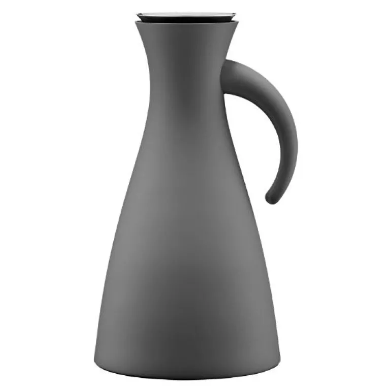 Termokannen fra Eva Solo i matt grå er 100 % dryppfri. Den elegante termokannen har en patentert hellekant i rustfritt stål, som heller varm kaffe og te i koppen – uten å søle en dråpe.