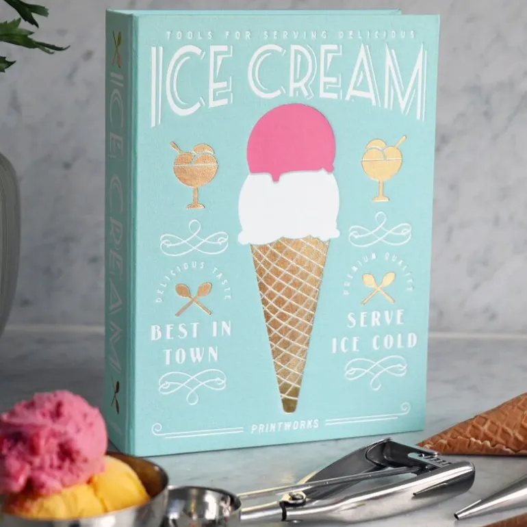 The Essentials iskremsett fra Printworks til isservering. Settet leveres i en elegant boks som ser ut som en bok. Inni boksen er alle nødvendige verktøy for å lage en fantastisk isopplevelse: