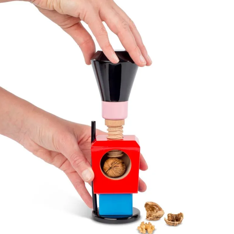 Gardisten med nøtteknekkeren i magen er inspirert av en udelt kjærlighet til nøtter, fine farger og former. Den ikoniske figuren marsjerer stolt inn i hjemmet og er en sann venn i nøden – han lar seg ikke vippe av pinnen når harde nøtter skal knekkes. Gardisten er laget i bøk og holder vakt med lekende letthet.