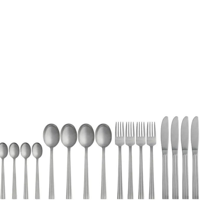 Laget av rustfritt stål med en matt finish, kombinerer settet stil og funksjonalitet. Bestikket tåler oppvaskmaskin og er designet for å gi både hverdags- og festmåltider et sofistikert preg.