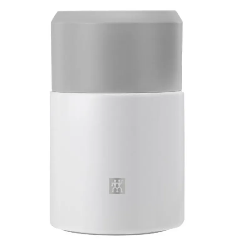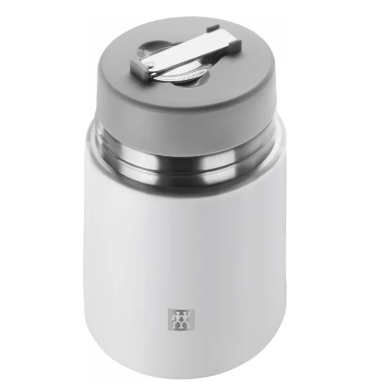 Hvit og sølvfarget mattermos, Thermo 70 cl med skje, fra Zwilling. Et perfekt alternativ når du vil ha med deg en egen lunsj – til jobben, på turen eller til parken. Denne rommer 7 dl og mulighetene er uendelige. Ta med en varmende suppe, en sprø salat eller en god pasta. Varm mat holdes oppvarmet i opptil 8 timer, og kald mat kald i opptil 11 timer.