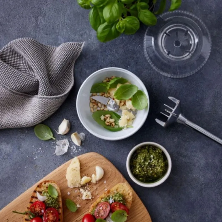 Enten du forbereder barnemat eller ønsker å krydre rettene dine med finhakket krydder som kanel, vanilje, muskatnøtt eller chili, håndterer Bamix prosessoren dette enkelt. Den er utmerket for å hakke tørre ingredienser som tørkede grønnsaker, harde oster og sjokolade, og kan også brukes til å finhakke sopp, nøtter, kornprodukter, frø og urter.