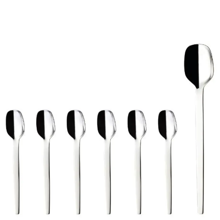 Dessertsett fra den minimalistiske Tina-serien fra Hardanger Bestikk. Bestikket er rent og selvsikkert, og står i sterk kontrast til de elegante kurvene som preger flere andre bestikkserier. Dessertsettet inneholder en serveringsskje som har gripevennlig håndtak og god dybde. Settet har også seks dessertskjeer som er større, lengre og dypere enn vanlig teskje. Stålet som er av 18/10 rustfritt stål tåler oppvaskmaskin, og produktet har livstidsgaranti. Dessertsettet leveres i gaveeske og inneholder alt du trenger til seks personer;