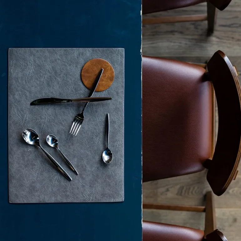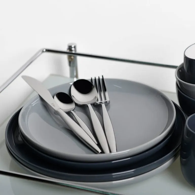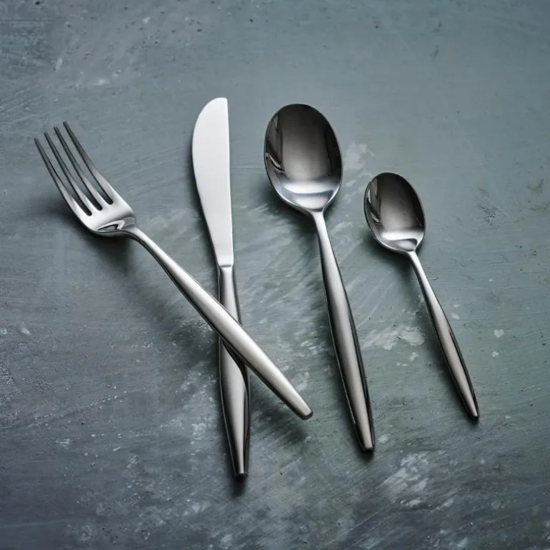 MODERN HOUSE design Tindre er produsert i 18/0 stålkvalitet (kniv 13/0) som er svært motstandsdyktig mot flekker og korrosjon, men selv de fineste legeringer vil svekkes om det utsettes for eksempelvis etsende/syreholdig mat, salt, høyt mineralinnhold i vann, sterke vaske/blekemidler. Stål 18/0 betyr at det består av 18% krom og 0% nikkel. Kan rengjøres i oppvaskmaskin.