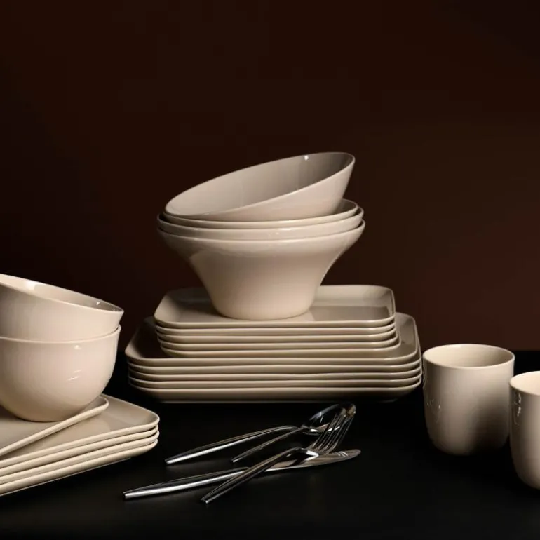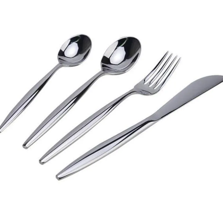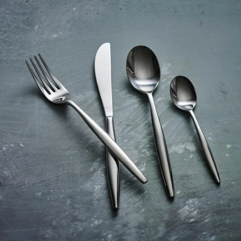 MODERN HOUSE Tindre er produsert i 18/0 stålkvalitet (kniv 13/0) som er svært motstandsdyktig mot flekker og korrosjon, men selv de fineste legeringer vil svekkes om det utsettes for eksempelvis etsende/syreholdig mat, salt, høyt mineralinnhold i vann, sterke vaske/blekemidler. Stål 18/0 betyr at det består av 18% krom og 0% nikkel. Kan rengjøres i oppvaskmaskin.12 kniv12 gaffel12 skje12 teskjeVær oppmerksom på følgende for å forlenge levetiden på bestikket 1. Skyll salt eller mat fra bestikk rett etter bruk. Dette for å unngå rust og andre flekker som kan oppstå, spesielt av mat med høyt syreinnhold. 2. Håndvask, – bruk varmt vann tilsatt flytende vaskemiddel og skyll grundig. Vann mykner kan være nødvendig dersom høyt mineralinnhold i vannet. Tørk umiddelbart etter vask med en myk klut. 3. Oppvaskmaskin – Fjern matrester før bestikket settes inn i oppvaskmaskin. Ta ut bestikket fra oppvask maskinen umiddelbart etter tørking. Tørk av fuktighet, før bestikket legges bort. Dette for å unngå rust og andre flekker som kan oppstå.4. Såpe med skuremiddel eller oppvaskskrubb bør ikke benyttes. 5. Sølv polering må ikke benyttes på stål bestikk!