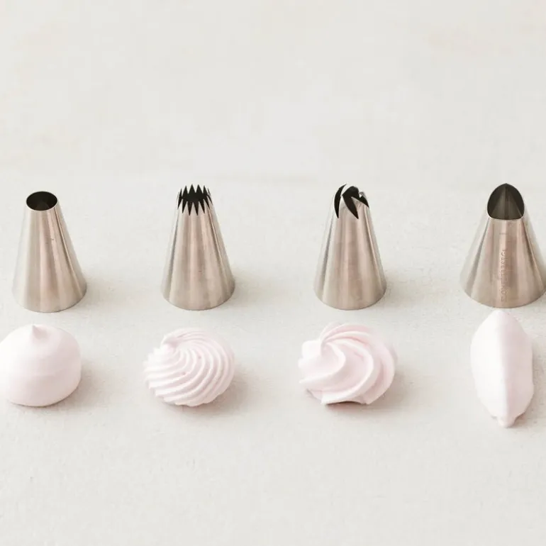 Den runde, glatte tippen på 12 mm passer til klassiske oppskrifter som kransekakemasse, vannbakkels og pisket krem, mens rosetippen på 13 mm gir et elegant preg til smørkrem og marengs.