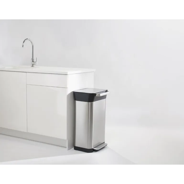Poser og luktfiler kan kjøpes i tillegg. Den er 39 cm lang, 34,5 cm bred, 68,5 cm høy og rommer 30 liter. Laget i rustfritt stål og ABS plast