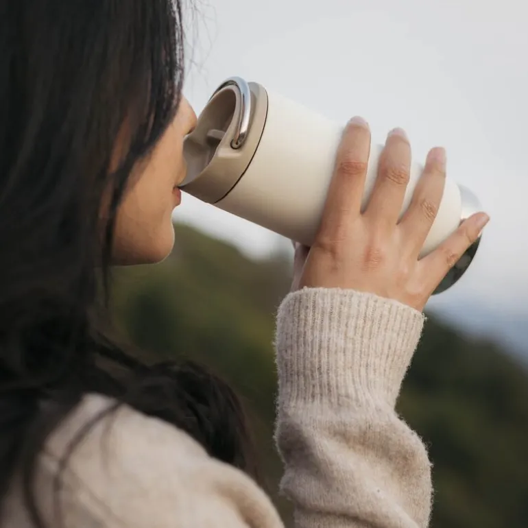 TKWide termokopp 35 cl med kafélokk i fargen Tofu fra Klean Kanteen er utviklet for deg som vil ha en solid, plastfri og lekkasjesikker løsning for kaffe og kalde drikker på farten. Laget av 90 % resirkulert 18/8 rustfritt stål og utstyrt med Climate Lock™ dobbeltvegg vakuumisolasjon, holder koppen varm drikke i opptil 11 timer og kald drikke i opptil 38 timer.