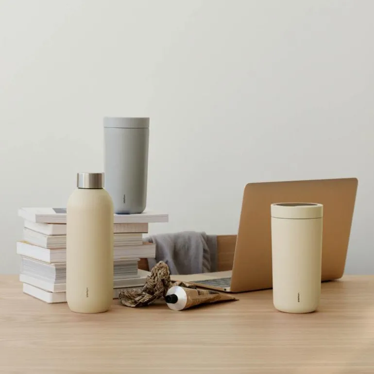 Med et lett trykk på toppen, er koppen drikkeklar, og det er mulig å drikke fra den hele veien rundt. Trykk igjen og To Go Click er lukket. To Go Click 0,4 l. er fremstilt i dobbeltvegget stål med vakuum, noe som sikrer at termokruset holder drikken varm i 4 timer og kald i 8 timer.
