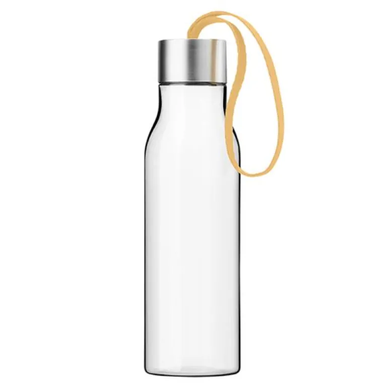 Praktisk drikkeflaske 0,5 liter med snor i fargen golden sand, fra Eva Solo. Drikkeflasken gjør det mulig å ha friskt vann tilgjengelig hele tiden. I vesken, på kontoret og til fritidsbruk. Den er 100 % tett, kan brukes igjen og igjen og belaster derfor ikke miljøet. Drikkeflasken er fremstilt i BPA-fri plast, noe som innebærer at den ikke inneholder bisfenol, ftalater eller tungmetaller.
