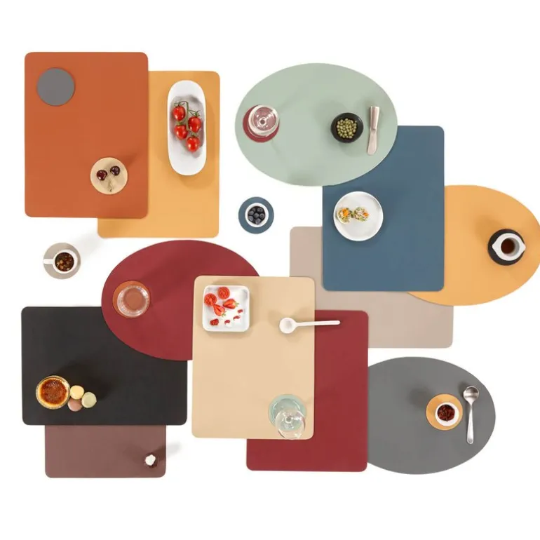 Bord -og glassbrikker i flere flotte farger og fasonger. Kombiner gjerne farger til et spennende dekket bord. Laget av kunstlær i høy PVC kvalitet med høy mostandsdyktighet mot bøy i kanter og brettemerker. Dekkebrikken er 47 cm i diameter. Lett å rengjøre med en fuktig klut.