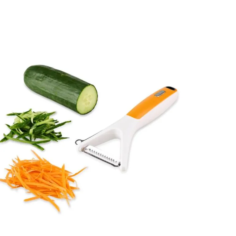 Zyliss Julienne Peeler skaper ultra tynne, profesjonelle julienne strimler av frukt og grønnsaker raskt og enkelt. Det ekstra skarpe svingbladet med tenner i rustfritt stål skiver 2 ganger for å oppnå et flott resultat. Brukervennlig med et ergonomisk håndtak som passer komfortabelt i hånden.