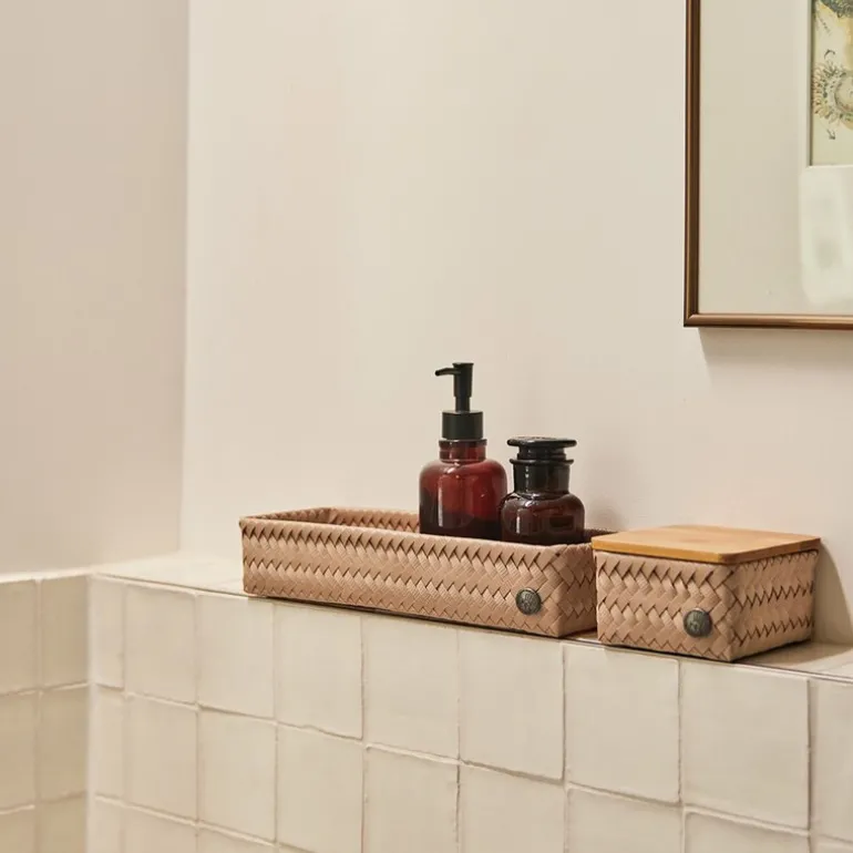 Top Fit Tiny oppbevaringskurv med bambuslokk 13x13x8 cm i caffè latte fra Handed By er både praktisk og dekorativ. Kurven er en del av TOP FIT-serien, og kan stables i skap, skuffer eller hyller – perfekt til småting du vil ha ryddig.