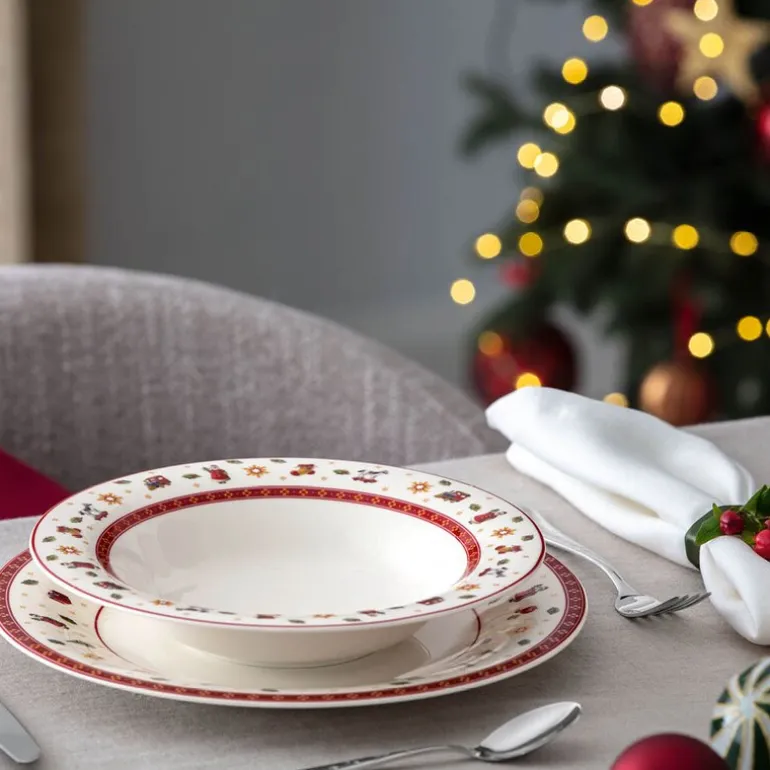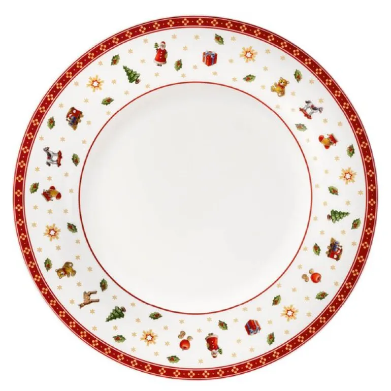 Toy’s Delight Special middagstallerken med kant på 27 cm fra Villeroy & Boch bringer en nostalgisk og festlig atmosfære til hjemmet ditt. Denne tallerkenen, en del av den elskede Toy’s Delight-kolleksjonen, er utsmykket med sjarmerende motiver i rødt, grønt og hvitt – farger som minner om tradisjonelle julefeiringer og vekker gode barndomsminner. Med sitt detaljrike design blir denne middagstallerkenen et ekstra spesielt innslag på ethvert julebord, som skaper en lun og innbydende stemning. Produsert i Tyskland, gir den et klassisk og tidløst preg som passer for alle generasjoner, og gjør høytiden enda mer minneverdig.