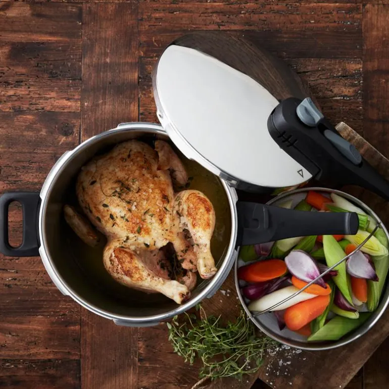En trykkoker kan brukes til det meste – du kan dampkoke, koke, bresere, brune, tilberede kjøtt, fisk, grønnsaker, gryteretter, supper, og ris.