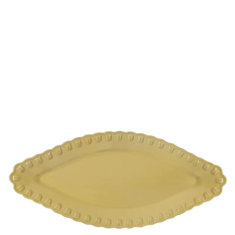 PotteryJo TULIPA ovalt serveringsfat, 42 cm i Pale Moon, kombinerer generøs størrelse med sofistikert design. Den bølgeformede kanten og det delikate tulipanrelieffet gir et elegant uttrykk til bordet.