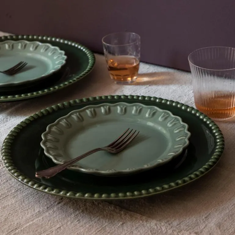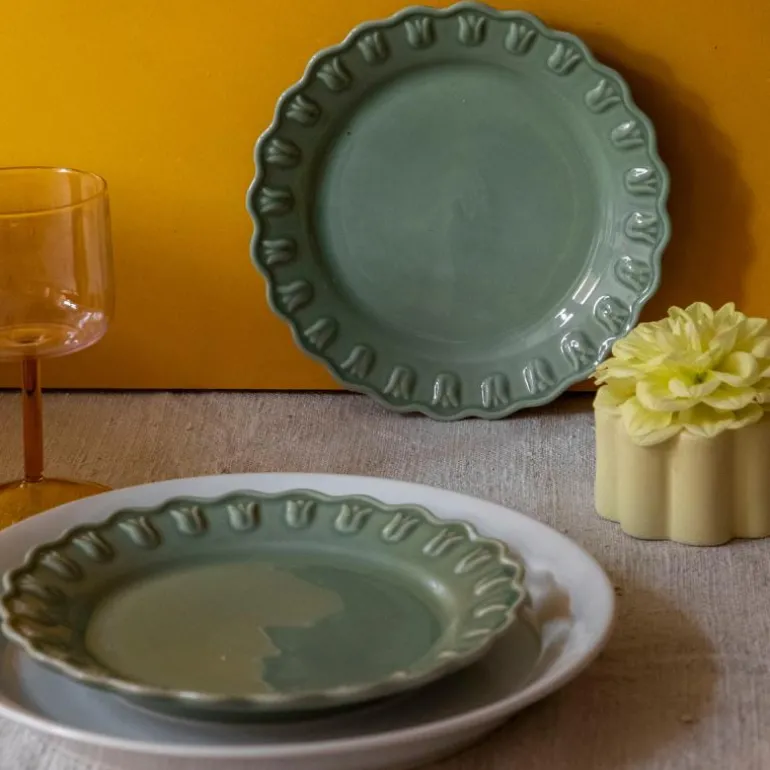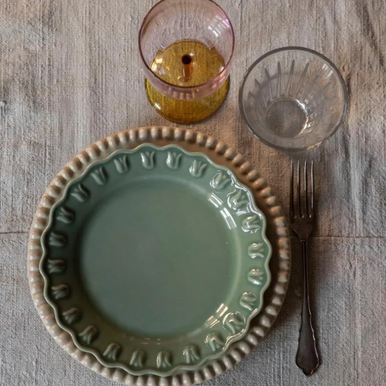 Med leken kamskjellkant, robust materiale som tåler daglig bruk, og de vakreste glasurene, er Tulipa-kolleksjonen produsert PotteryJo’s fabrikk i Portugal.