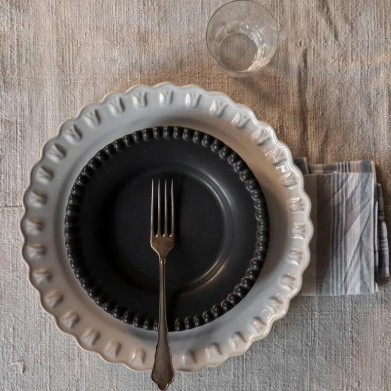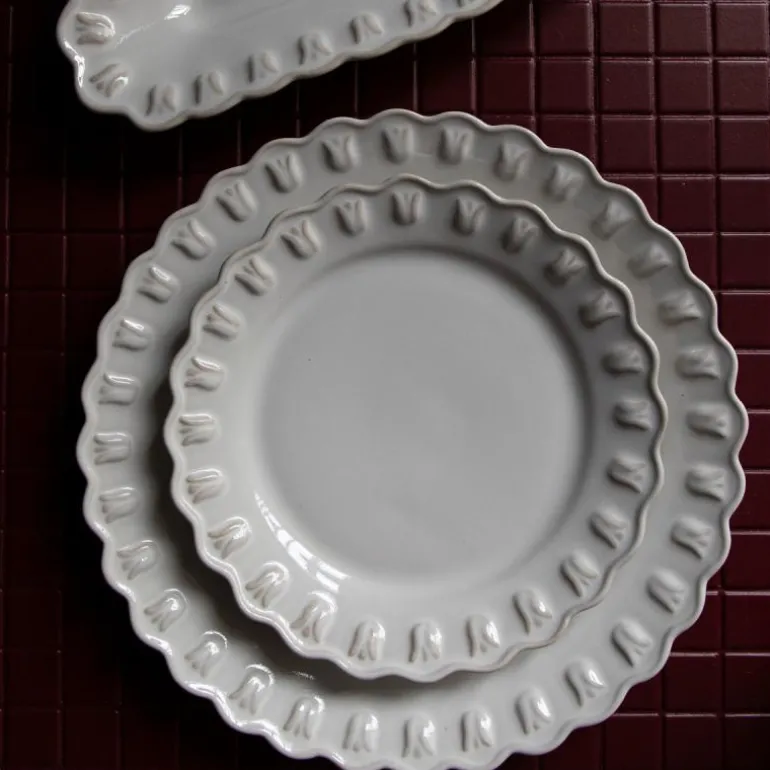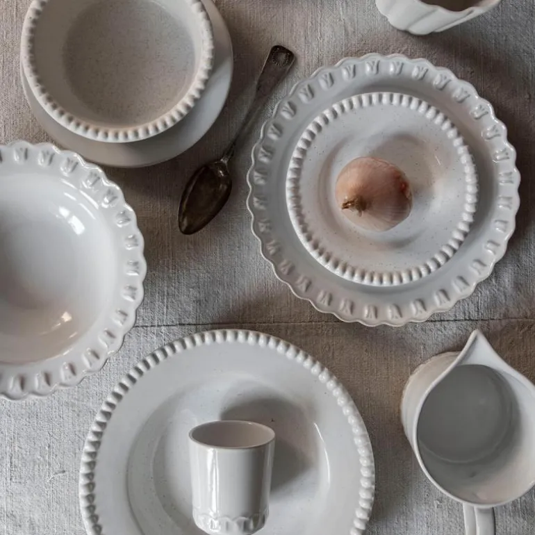 Med leken kamskjellkant, robust materiale som tåler daglig bruk, og de vakreste glasurene, er Tulipa-kolleksjonen produsert PotteryJo’s fabrikk i Portugal.