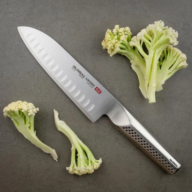 Ukon santokukniven med luftlommer på 18,5 cm fra Global er et eksepsjonelt verktøy for alle matlaging entusiaster. Med sitt innovative design og høykvalitetsmaterialer er denne japanske kniven et must-have i ethvert kjøkken.