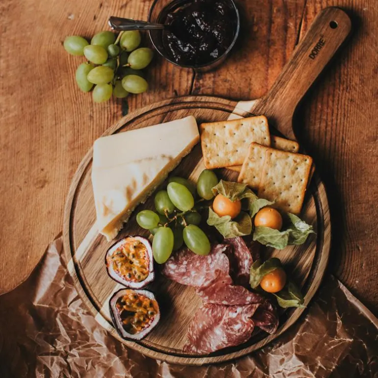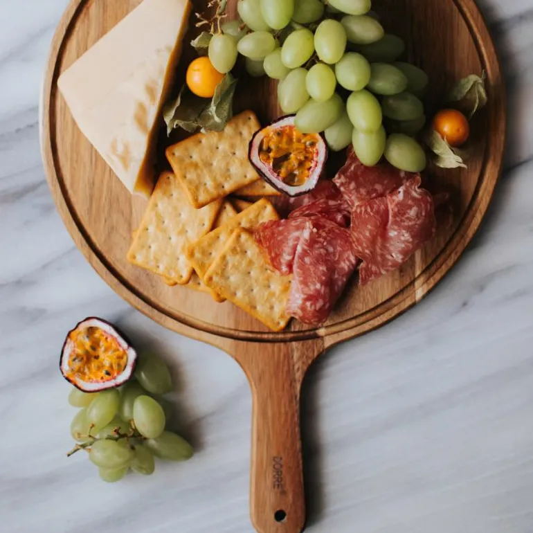 For en elegant presentasjon på kjøkkenet, velg Ulli oppdekkningsbrett eller skjærebrett i rundt design laget av akasietre. Med generøse mål på 38×25,5×1,5 cm vil den tilføre en sofistikert touch til dine kulinariske kreasjoner.