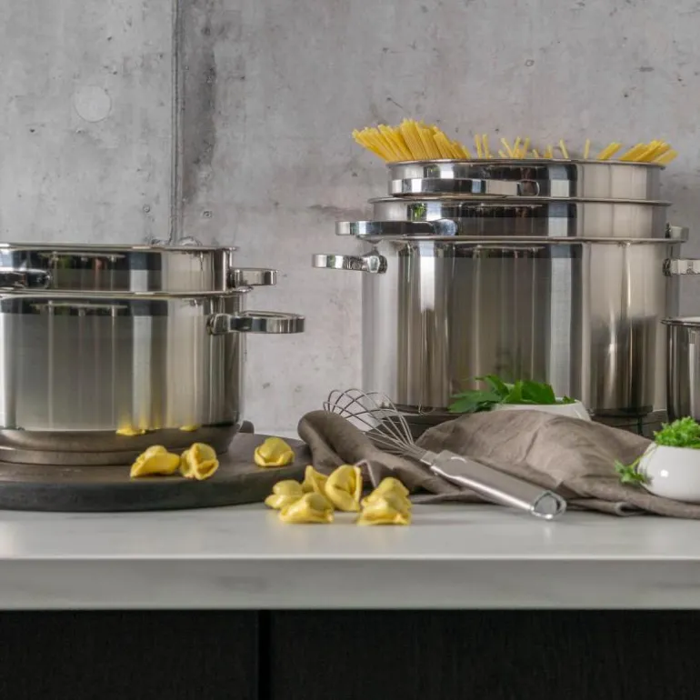 Sabor Ultima er en slitesterk kjeleserie i rustfritt stål som passer perfekt for deg som er glad i å lage mat. Kjelene har et eksklusivt design og holder svært høy kvalitet. Med Sabor Ultima er du sikret gode matlagingsopplevelser i mange år fremover. Tykke bunner og vegger sikrer en jevn varmefordeling og ypperlige kokeegenskaper. Kjelene tåler bruk av alle slags redskaper og kan vaskes i oppvaskmaskin. Serien passer til alle typer platetopper, også induksjon. Med Sabor Ultima har du stålkontroll på kjøkkenet. Serien består av syv forskjellige kasseroller, i tillegg til en sautepanne. Fra den minste smørsmelteren til den største kasserollen på 7 liter, vil du være garantert et produkt til enhver anledning. Med unntak av smørsmelteren kommer alle kjelene med lokk. Også dette i rustfritt stål, med egen dampventil.