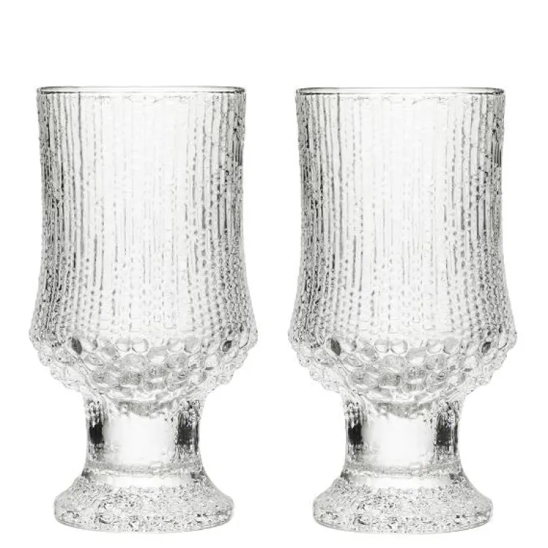 Ultima Thule øl m/stett 34cl 2-pk. Design Tapio Wirkkala 1968.Smeltende is i Lappland var Tapio Wirkkalas inspirasjon da Ultima Thule ble til, men overflaten på Ultima Thule ble opprinnelig skapt da Wirkkala på 1960-tallet eksperimenterte med å helle glødende glassmasse i grafiske treformer han hadde skåret i. Mønsteret ble gradvis endret ettersom glasset brant seg inn i overflaten på treformene.Det eksklusive designet gjenspeiler de tusentals timer som har blitt brukt for å finjustere glassblåseteknikken, som kreves for å produsere effekten i glasset. Designer Tapio Wirkkala. Kan vaskes i oppvaskmaskin.