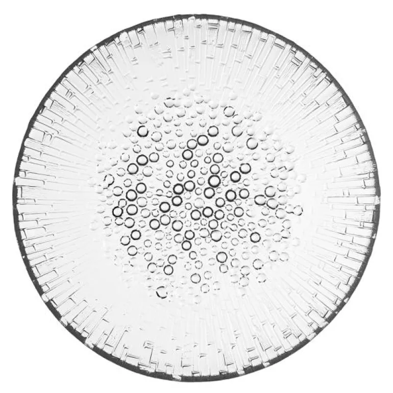 Ultima Thule tallerken 190mm. Design Tapio Wirkkala 1968. Smeltende is i Lappland var Tapio Wirkkalas inspirasjon da Ultima Thule ble til, men overflaten på Ultima Thule ble opprinnelig skapt da Wirkkala på 1960-tallet eksperimenterte med å helle glødende glassmasse i grafiske treformer han hadde skåret i. Mønsteret ble gradvis endret ettersom glasset brant seg inn i overflaten på treformene. Det eksklusive designet gjenspeiler de tusentals timer som har blitt brukt for å finjustere glassblåseteknikken, som kreves for å produsere effekten i glasset. Perfekt til kaker og dessert. Vakker i kombinasjon med andre deler i samlingen.Kan vaskes i oppvaskmaskin.