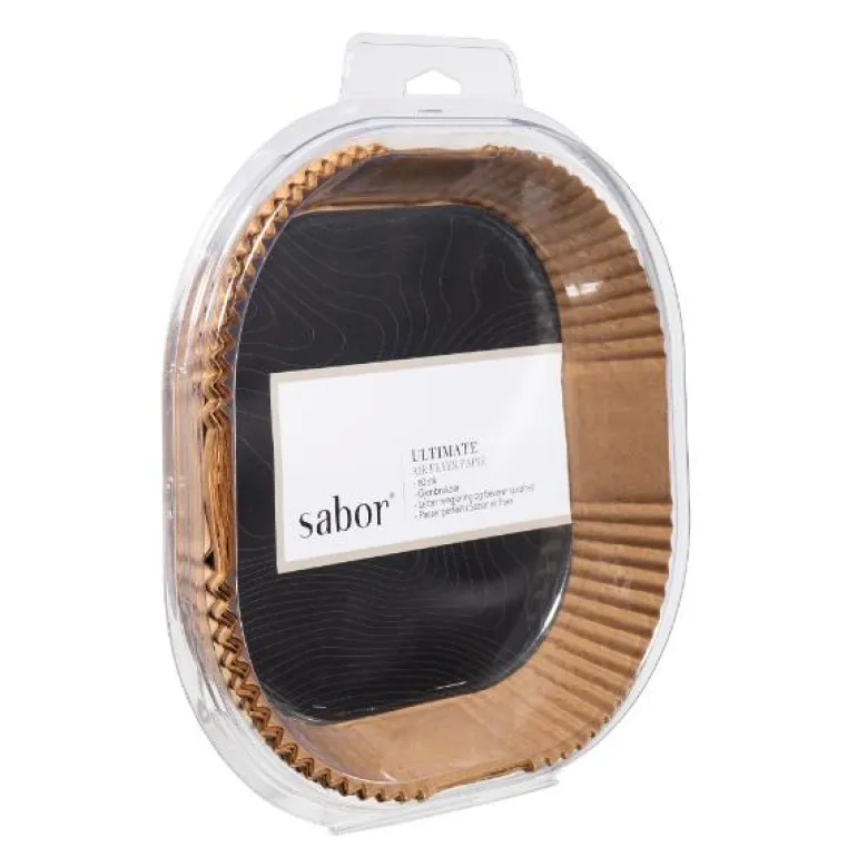 Ultimate airfryer papir firkantet brun fra Sabor. Sett av 60 stk bakepapir tilpasset bruk i airfryer. Disse bakepapirene lar maten bevare oljer og kjøttsafter uten å trenge ned i bunnen av air fryeren. Dette vil også lette rengjøringen.