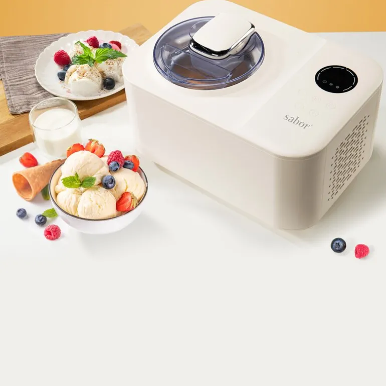Sabor Ultimate iskremmaskin 1,2L i hvit er det perfekte verktøyet for å lage deilig hjemmelaget iskrem til opptil 6 personer. Med denne maskinen kan du enkelt imponere venner og familie med fersk sorbet på bare 30-40 minutter eller kremet italiensk iskrem på 40-60 minutter. Maskinen gir deg 1,2 liter ferdig iskrem fra 500 gram ingredienser, noe som betyr at du alltid har fersk iskrem klar til servering, uten behov for ekstra kjøling. Berøringsdisplayet gjør betjeningen enkel, mens LED-skjermen gir deg full oversikt over tiden. Det gjennomsiktige lokket gjør det enkelt å følge med på konsistensen under hele prosessen.