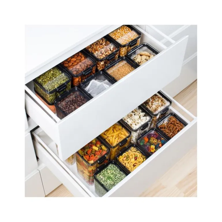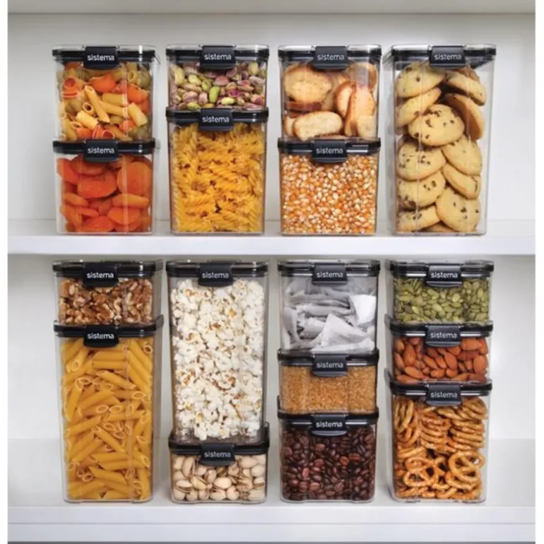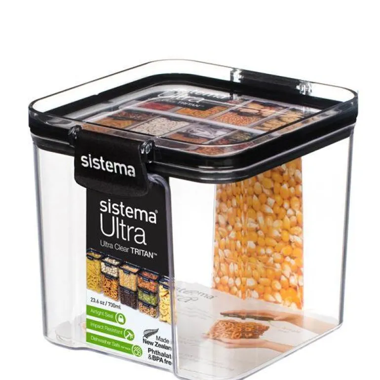 Sistema sin Ultra serie har klare beholdere som kan oppbevares på benkeplaten, i kjøkkenskuffen, kjøkkenskapet og kjøleskapet.