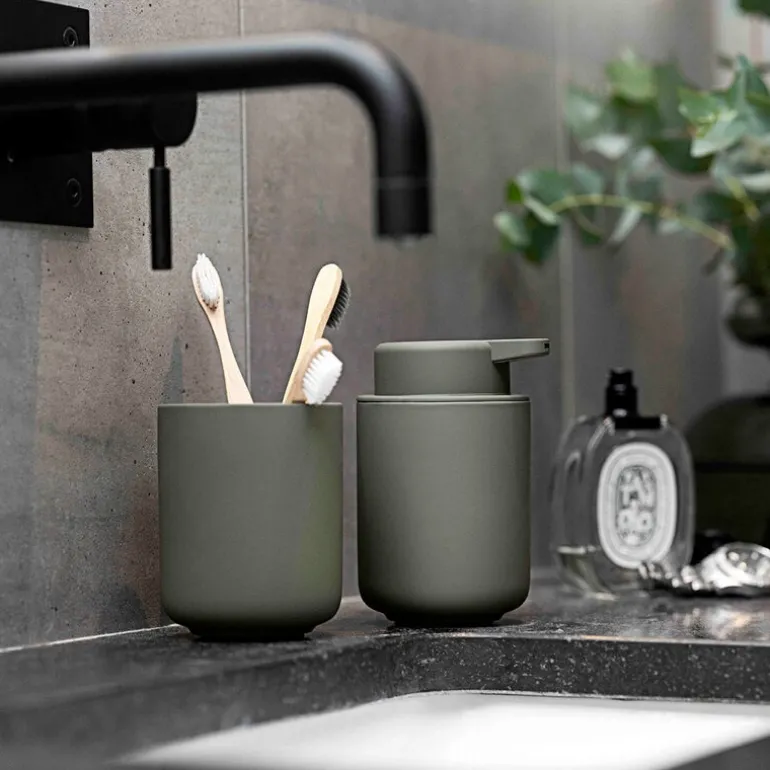 Ume såpedispenser fra Zone Denmark kombinerer funksjonalitet med et elegant, harmonisk design. Den olivengrønne fargen gir et rolig uttrykk som passer perfekt inn på baderommet, enten alene eller sammen med andre elementer fra Ume-serien.