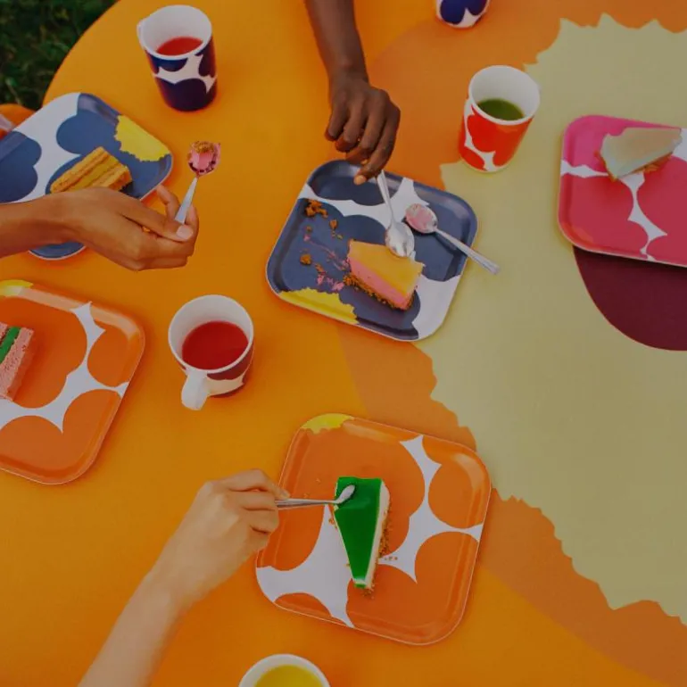 Unikko ble skapt av Maija Isola i 1964 og har siden blitt en internasjonal ikon innen trykkdesign. Grunnleggeren av Marimekko, Armi Ratia, trodde at det ikke var mulig å fange den sanne essensen av ekte blomster i trykk, derfor var blomstermønstre tidligere utelatt fra Marimekko-kolleksjonene. Så, Maija Isola designet Unikko for å være en abstraksjon av en blomst i stedet for en fotorealistisk gjengivelse. I dag er Unikko et kraftig emblem for glede og kreativitet, sømløst integrert i Marimekkos designidentitet. Marimekko, et finsk designhus etablert i 1951, har vært kjent for sine distinkte mønstre som symboliserer positivitet og personlig styrke. Deres livslange mål er å tilføre farge og glede i liv og hjem over hele verden, og inspirere mennesker til å omfavne lykke slik de er.¤Deres rike kunstneriske arv gjenspeiles i dristige, stripete, rutete og blomstrete mønstre som pryder en rekke produkter fra klær til keramikk.¤Grunnlagt av Armi Ratia som fremmet en kultur av kreativ frihet for Marimekko’s hovedsakelig kvinnelige kunstnere, en arv som fortsatt blomstrer i dag. Marimekko’s trykkfabrikk i Helsinki fungerer som et levende senter for kreativitet, og puster liv i deres feirede mønstre og tjener som hjertet og sjelen til merket.