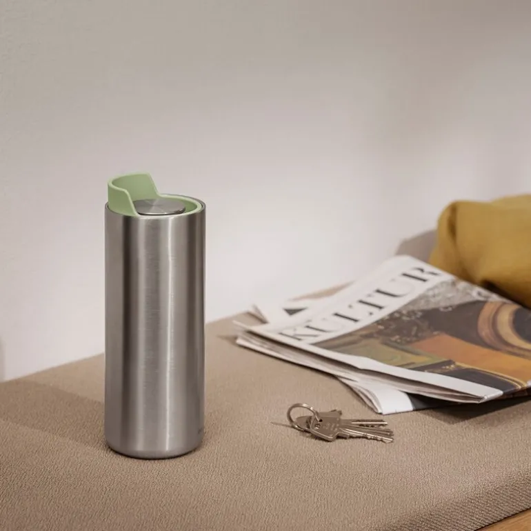 Eva Solo Urban To Go termokopp pistachio på 35 cl kombinerer stil og funksjonalitet for å gi deg en optimal opplevelse når du er på farten. Den avanserte dobbeltveggede vakuumkonstruksjonen holder drikken din perfekt temperert – varm i opptil 6 timer og kald i opptil 12 timer.