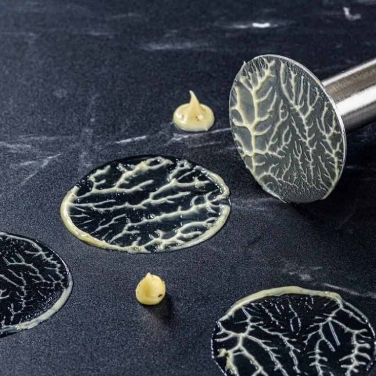 Rundt på tallerkenen eller lagvis oppover – formene gir deg fleksibilitet og kontroll. For en ekstra dekorativ finish, kan du bruke pusheren som stempel i en liten dråpe saus på tallerkenen og lage vakre sirkulære konturer.