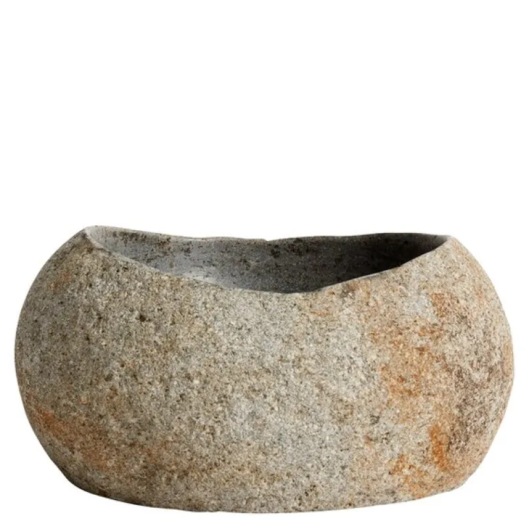 Valley-skålen i medium størrelse fra Muubs er en unik innredningsdetalj, håndlaget av naturlig elvestein, som gir hver skål et helt eget utseende. Med sin rå overflate på utsiden og den polerte innsiden, feirer designen ufullkommenheter og fremhever naturens egen skjønnhet. Skålen kan brukes på mange måter – som fruktskål på spisebordet, til snacks, eller som et dekorativt element i hjemmet ditt.