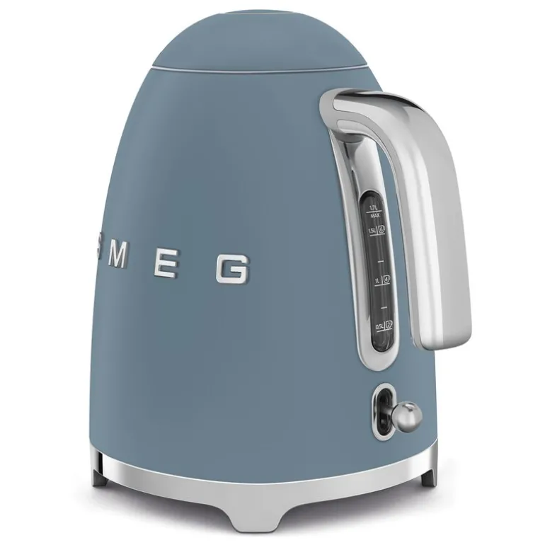 Smeg vannkoker fra serien 50’s Retro Style er en flott kombinasjon av klassisk design og moderne funksjonalitet, perfekt for deg som ønsker å løfte kjøkkenets stil. Denne modellen i den sofistikerte fargen storm blue er laget av solid rustfritt stål, mens det krombelagte håndtaket tilfører en luksuriøs touch. Det praktiske push-åpningslokket gjør påfyllingen enkel, og med en generøs kapasitet på 1,7 liter passer den utmerket for både mindre og større husholdninger. Den roterbare bunnplaten på 360° gjør det enkelt å plassere vannkokeren fra alle vinkler, og den automatiske avstengingen sikrer trygg bruk ved 100°C eller når det ikke er mer vann igjen. Det avtakbare kalkfilteret i rustfritt stål bidrar til rent vann og enkel rengjøring, mens det skjulte varmeelementet og de stabile gummibeina gir økt sikkerhet og holdbarhet. Med en effekt på 2400 W varmes vannet raskt opp, slik at du kan nyte favorittdrikken din på kort tid.
