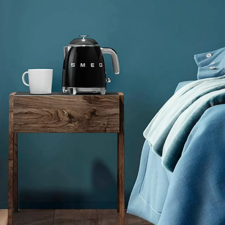 SMEG mini-vannkoker (KLF05) i svart 50-talls retrodesign gir deg god grunn til å la vannkokeren stå fremme på benken. Med sitt sofistikerte og stilfulle utseende, i tillegg til utmerket kvalitet, vil SMEG vannkoker bli et praktisk designelement på kjøkkenet ditt – i lang tid framover.