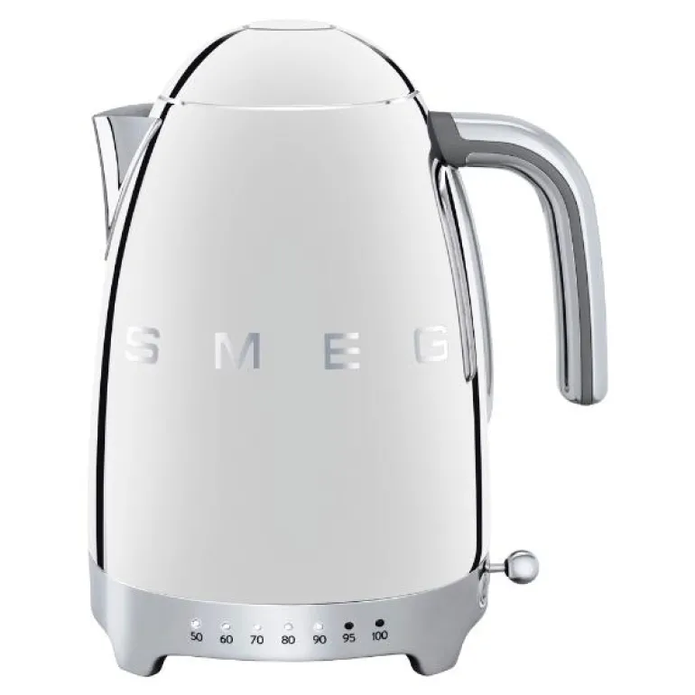 SMEG vannkoker med termostat (KLF04) i krom 50-talls retrodesign gir deg god grunn til å la vannkokeren stå fremme på benken. Med sitt sofistikerte og stilfulle utseende, i tillegg til utmerket kvalitet, vil SMEG vannkoker bli et praktisk designelement på kjøkkenet ditt – i lang tid framover.