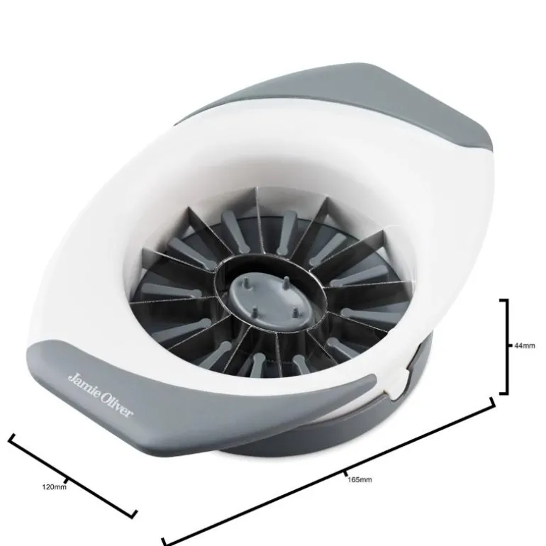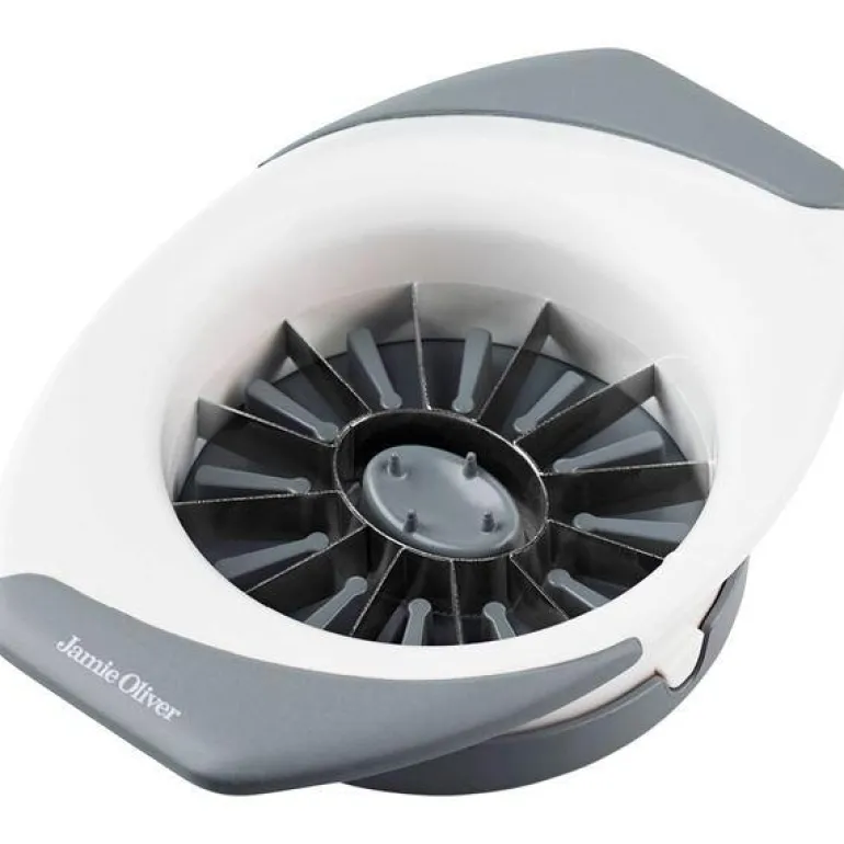 Med denne ferskendeleren fra Jamie Oliver deler du frukten din raskt og enkelt. Med sylskarpe kniver og dryppebrett blir dette en jobb med minimal innsats. Utformningen er spesielt tilpasset fersken og lignende frukt da kniven skjærer rundt den runde kjernen og gir bedre utnyttelse av fruktkjøttet. Bruk til for eksempel fruktsalater eller server båter som snacks. Saften som fanges i dryppebrettet kan enkelt tilsettes fatet for å berike smaken ytterligere. Rengjøres i oppvaskmaskin.