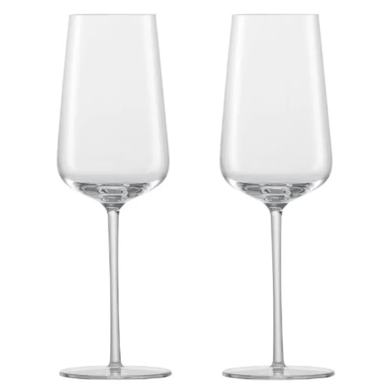 Et smalere og høyt glass som gjør at sprudlende viner holder bedre på boblene. Den brede bunnen ivaretar aromaene.
